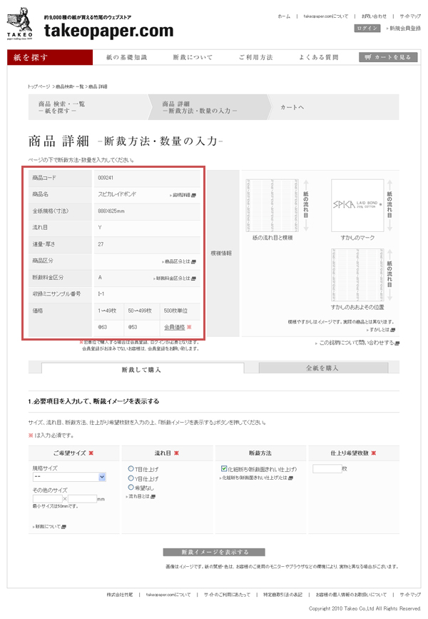 取扱いにくい紙や、断裁の刃を傷めるような特殊な紙は、区分を設けて段階的に断裁料金を設定しています。商品ごとの断裁料金区分は商品詳細画面をご確認ください。