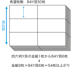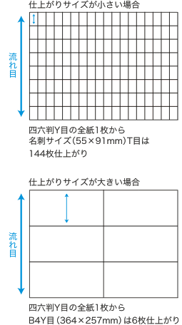 用途に適した流れ目を選択してください。ご指定がない場合は、1枚の全紙から断裁できる枚数がより多い流れ目を優先します。枚数が同じ場合はT目仕上げになります。