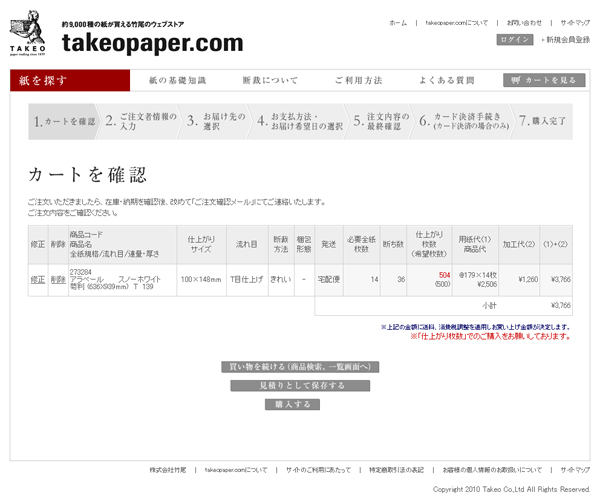 ご購入内容の詳細をご確認ください。紙は断裁すると元には戻りませんので、今一度ご確認くださいます様お願いします。