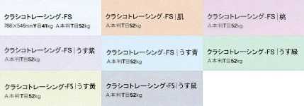 色名変更(イエローからうす黄、オレンジから肌、グリーンからうす緑、グレーからうす鼠、バイオレットからうす紫、ピンクから桃、ブルーからうす青へ) 増連量(四六判Y目 90kg・116kg)