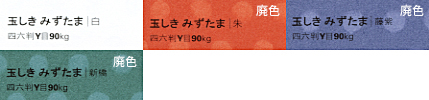 2018.02 一部廃色(みずたま 朱、みずたま 藤紫、みずたま 新橋 四六判Y目90kg) 2009.01 一部廃色(四六判Y目180kg みずたま 朱・みずたま 新橋・みずたま 藤紫)