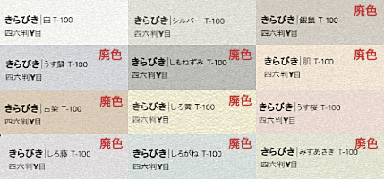 2020.08 一部廃色(しもねずみ、銀鼠、古染、肌、しろ黄、しろ藤、うす鼠、しろがね 、みずあさぎ 四六判Y目 T-70・T-100)