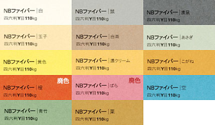 2021.07 一部廃色(ばら 四六判Y目 110・130・160kg)、2020.12 一部廃色(橙 四六判Y目 110・130・160kg)、2013.03 一部廃色(赤、青、黒 四六判Y目 110kg、130kg、160kg)