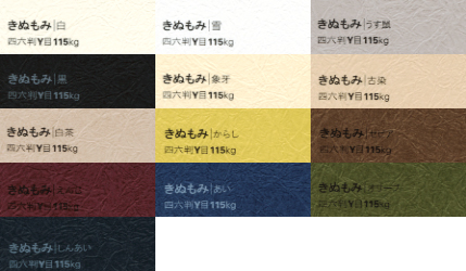 手揉み和紙の風合いに、自在な発色を実現した高印刷適性のラフ・グロスシリーズです。 |