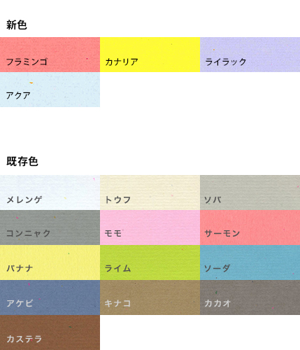 2017.07 増色(カナリア、フラミンゴ、アクア、ライラック 四六判Y目 90kg) 増連量(メレンゲ 四六判Y目 200kg)