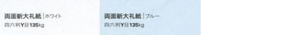 レーヨン繊維が漉き込まれた、和紙の風合いを持つリバーシブルタイプの大礼紙です。両面白と、片面は白でもう一面はパステル調の色付きの大礼紙です。