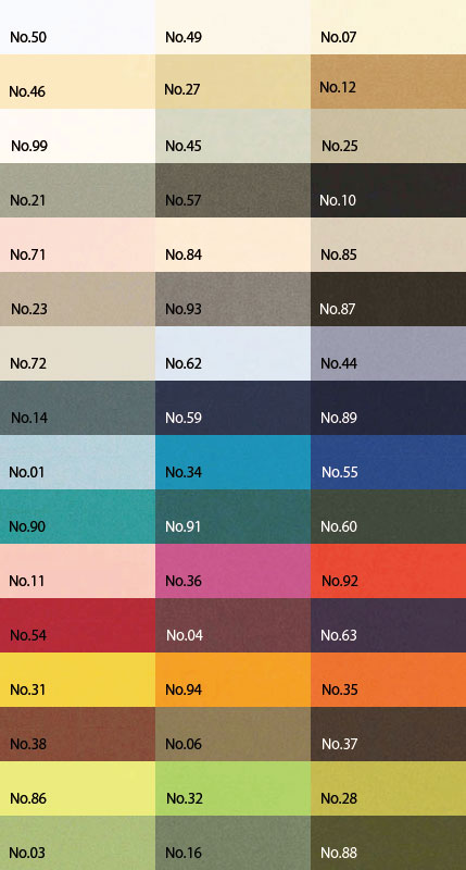 色鮮やかでクラシカルかつマットな風合いを基調としたファインペーパーです。厚みはカバーとテキストの2種、使い方によってお選びいただけます。グムンド社独自のカラーシステムを採用した、カラーラインナップです。