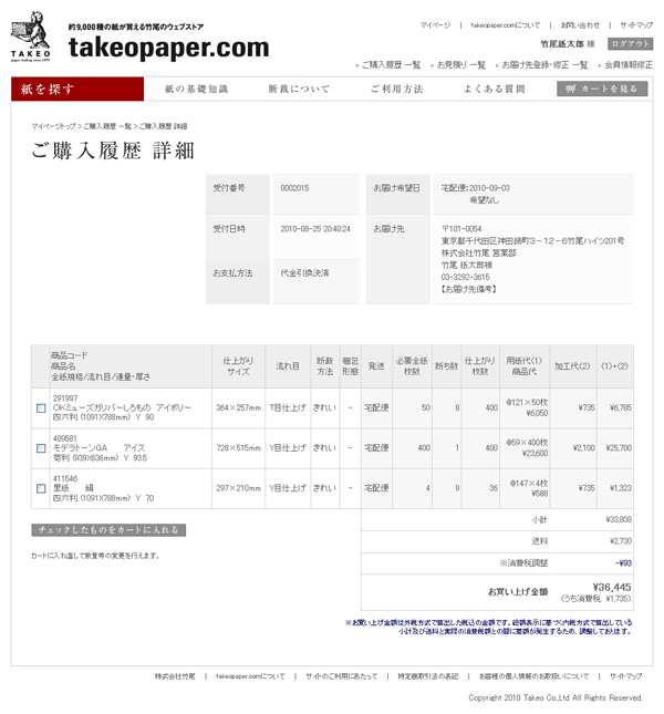 「ご購入履歴 詳細」ページ