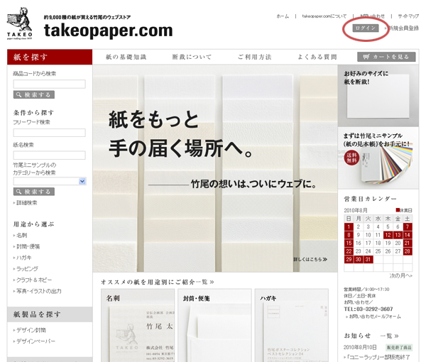 「ログイン」ページ