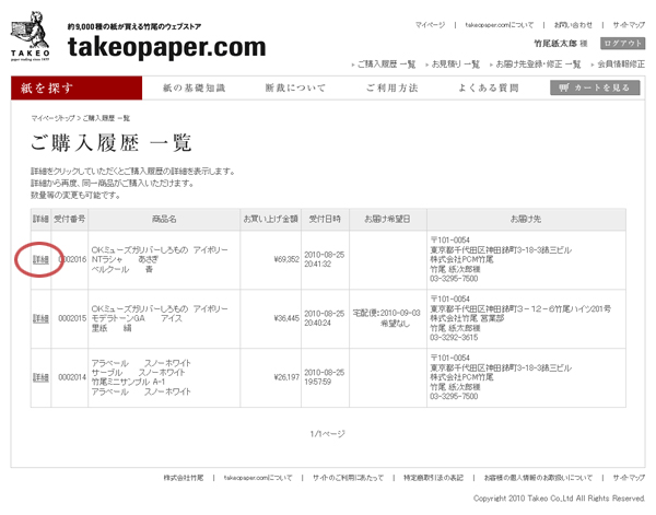 「ご購入履歴 一覧」ページ