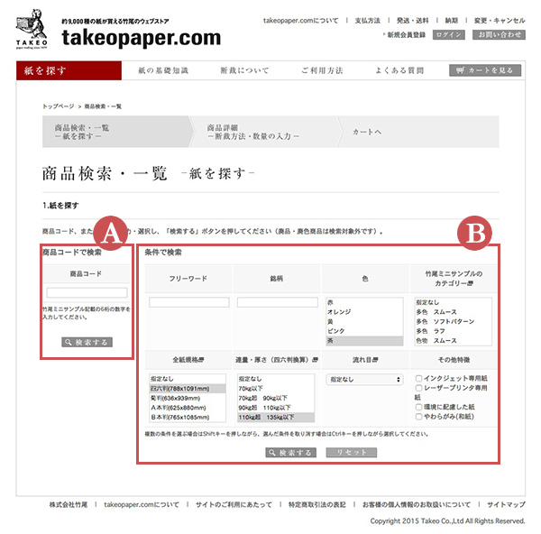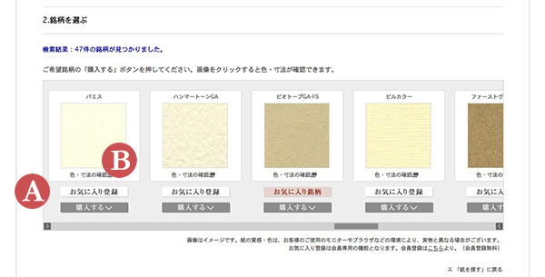 「紙を探す」ページ 2.銘柄を選ぶ