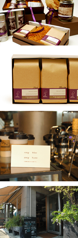 - ギフトBOXの敷き紙、コーヒー豆袋の帯、メニューや店頭POP
