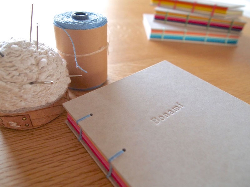 - 手製本の古典的な技法で綴じられたBonamiのカラフル手帳。紙と糸。素材そのままの素朴な美しさを大切にしています。NTラシャの繊細で豊富なカラーバリエーションとあたたかい手触りに私たちは大好きな景色を思い出します。晴れた日の浜辺 窓をうつ雨粒 水平線とまじりあう夕暮れの空 風に揺れる木々・・・彩り豊かな毎日を、ちいさな手帳に詰め込みました。(Bonamiさん)