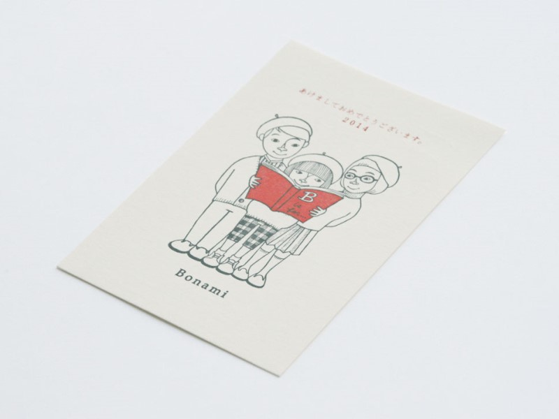 神奈川県真鶴町のアトリエで、手製本や活版印刷などを用いた本や紙のものを製作しているBonamiさんからいただいた年賀状をご紹介いたします。