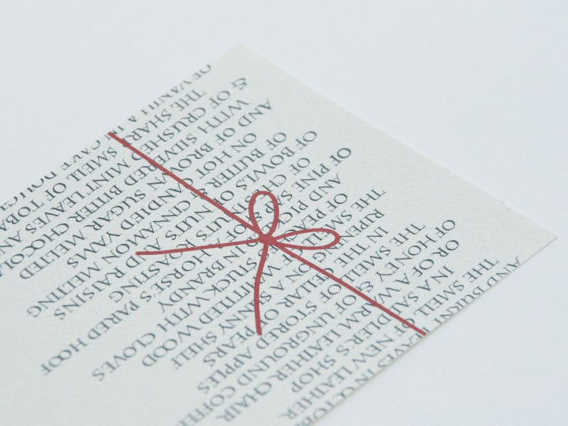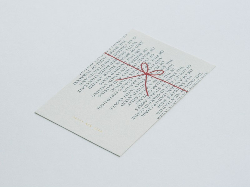しかしワンポイントとなるように金の箔押しにしようと決めました。上質なテクスチュアがあり厚みもある紙を選ぶことで、箔押しして生まれるエンボス感を期待しました。