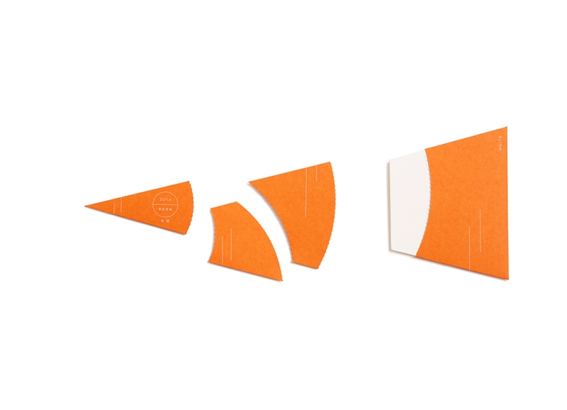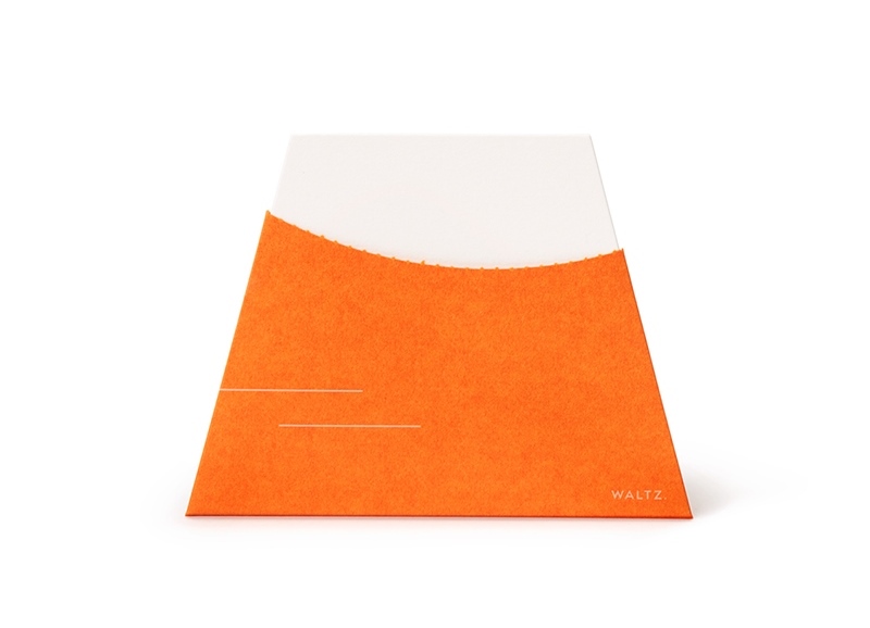- 数カ所にミシン目が入った、人参をかたどったカード。ミシン目に沿って切り取っていくと、最後に中から台形の白い紙が顔を出し、90度傾けるとお正月におめでたい赤富士に変身するという仕掛け。紙は人参の質感によく似ている、「ビオトープGA-FS」を使用。中の厚紙はビオトープGA-FSと同様にラフな風合いの「GAファイル」を使用しています。(WALTZ. さん)