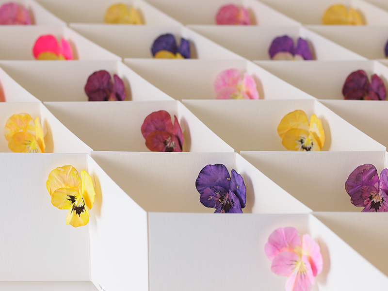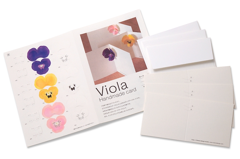 - 比較的簡単に作ることができるビオラのポップアップカードキットです。組み立てるだけのパーツと着色可能な無地のパーツの2種類の花弁を用意し、制作する人の好みや技術に応じて楽しむことができます。