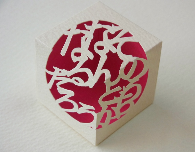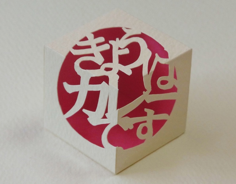 - 「2次元である文字を3次元にする」をテーマに、さまざまな形の立体を作っています。「今日の箱」シリーズは、ふだん何気なく目にする、口にする、耳にする、なんていうことのない言葉の中からその日の僕の気持ちに合うものをを選んで一日一個、箱にしています。