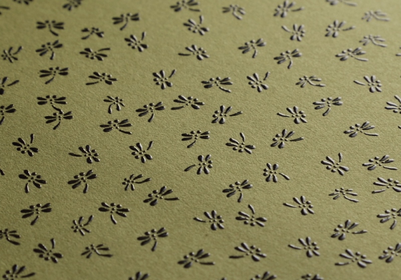- なめした鹿革に漆で文様付けをする伝統工芸品「印傳」を紙で表現するため、盛り上げ加工を施したときに発色の良い色を選びました。NTラシャの雰囲気のある色あいと、温かな質感がお気に入りです。(plus Orangeさん)