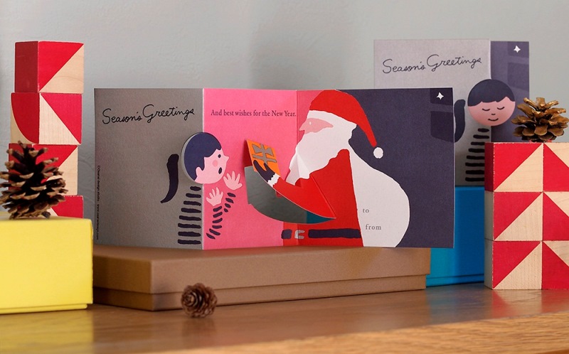 - 毎年、ポップアップなど「しかけ」のあるクリスマスカードを製作・発売しています。今年は古い絵本のような雰囲気に仕上げたいと考えていました。加えて、折り加工の細かい部分があるため、紙割れの出にくいハリのある紙を探していました。