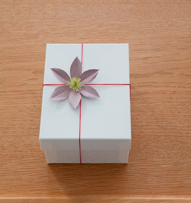 - 里紙の落ち着いた色合いのラインアップが、野の花の可憐さにぴったりでした。里紙の繊維が見えるような独特な表情も植物を感じさせるように思いました。また、タントのニュアンスカラーは里紙との相性がよく、自然の草花の微妙な色を表現するために多用いたしました。(やまもとえみこさん)