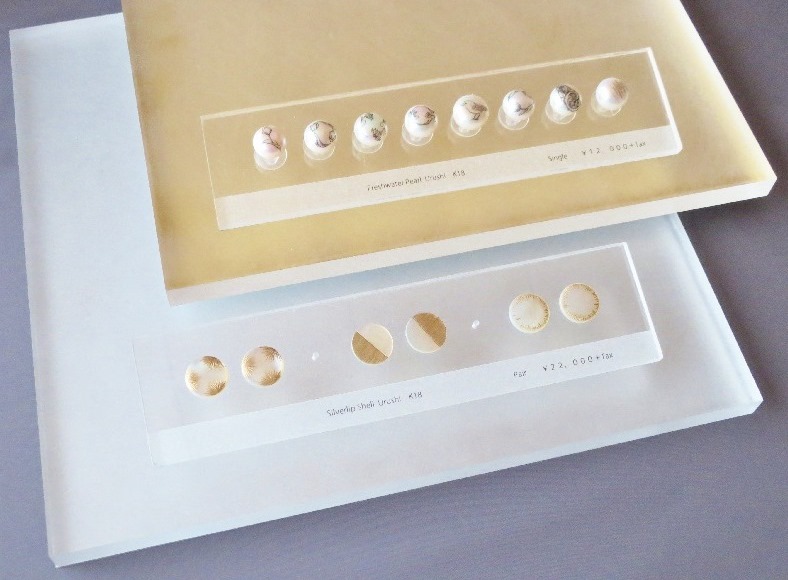 - ディスプレイで使用するアクリルの板の雰囲気を変えたくて探していました。マットのシルバーとゴールドですが、照明を当てるとアクリルの中で優しく光ってくれる所が気に入り、この紙に決めました。何枚か似たような紙を購入して、合わせてみたのですが、色のトーンや光り具合が商品と合っていたのでこの紙にしました。(Korat Works 長谷川 綾さん)