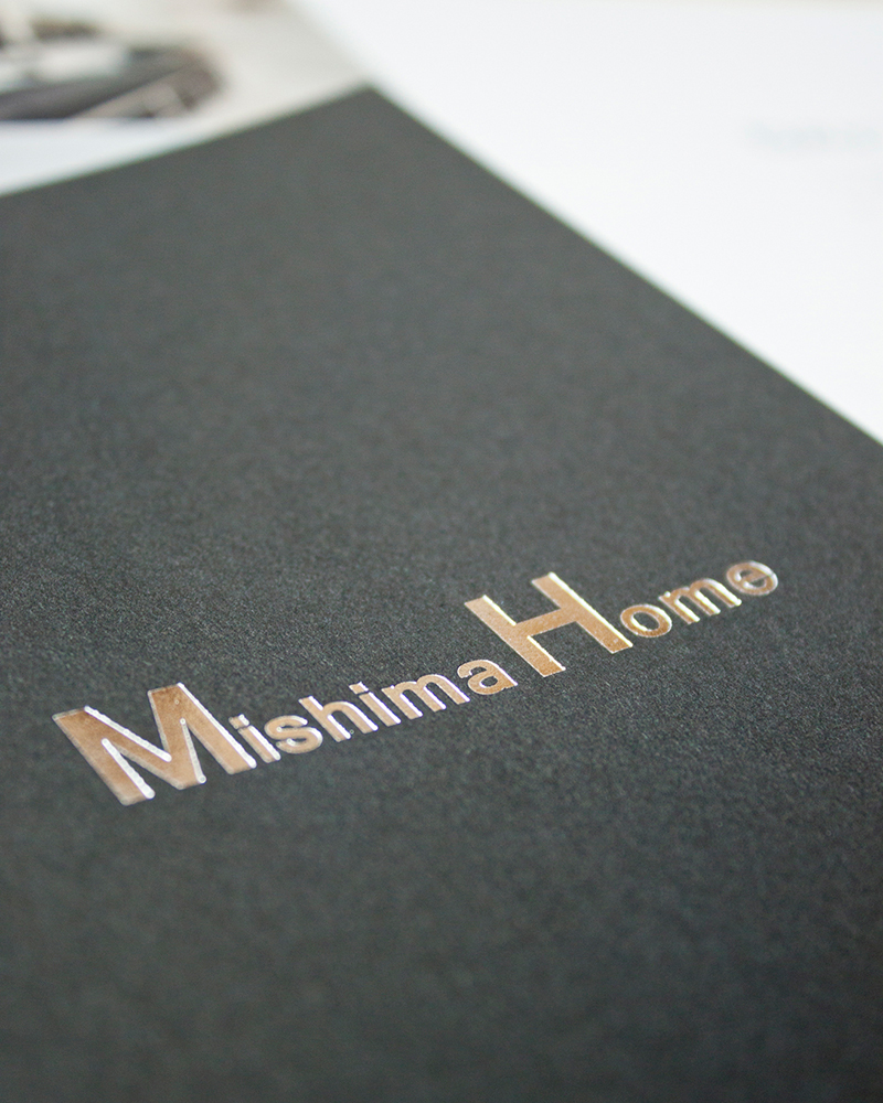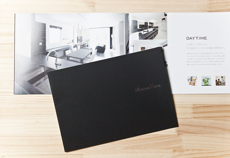 その中で「NTラシャ」に新色「漆黒」が登場したとお聞きし、従来の黒やグレーと合わせ、実際の紙を見ながらクライアント様と比較検討しました。深みのある黒ですが、NTラシャならではのコットンの温かみが感じられる肌触りの良い紙で住宅コンセプトとぴったりでした。クライアント様にもすぐ気に入って頂き、好評を得ています。(デザインスタジオ・オザキさん)