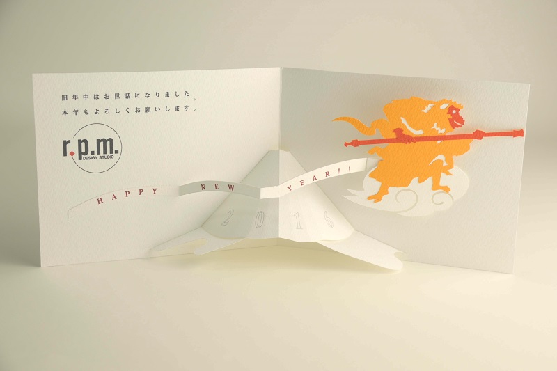 POP-UP式の絵本やカード、セールスプロモーションツールを制作されている、r.p.mデザインスタジオさんからいただいた年賀状をご紹介いたします。