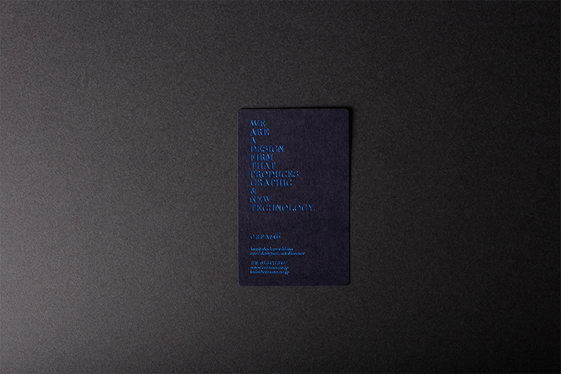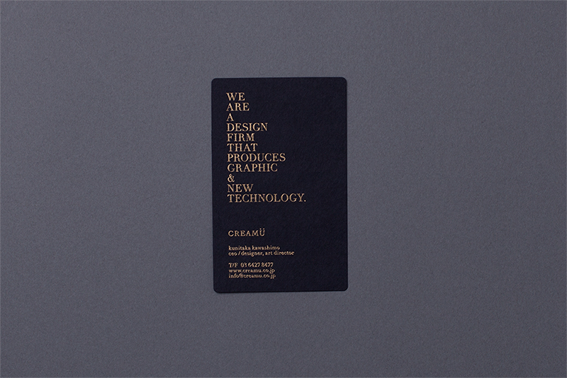 3枚目の写真が、Blue on Blueをテーマにした名刺です。厚くて硬めの紙で、色が美しく、ラメ感が強すぎないところが気に入っています。ドイツ製の箔ともうまくマッチしました。(creamu Inc. 川下城誉)