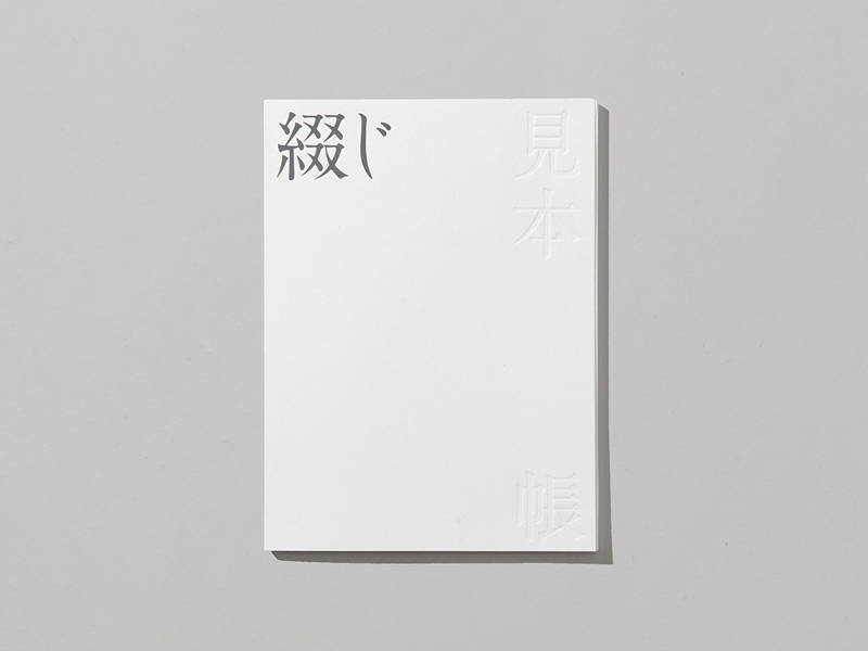 - 造本見本帳の作品「綴じ見本」を収録した本『綴じ見本帳』。その本文を収めて保護するためのタトウに、この紙を用いました。タイトルを深めの箔押し・空押しで入れており、押された部分と紙の質感にコントラストを出すため、「気包紙U ディープラフ」を選びました。(太田泰友さん)