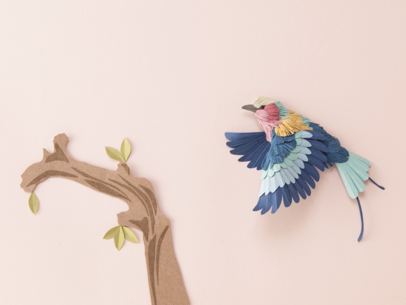 ペーパークラフト作家やまもとえみこさんに、4月8日発売の著書『かわいい鳥の立体切り紙』に収録された作品をご紹介いただきました。(Photo:金子 睦)