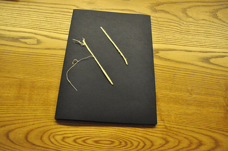 - 生成りの雁皮紙に五本の糸を漉き込んで、五線の作曲楽譜に見立てた作品『奏でる紙』を展示。