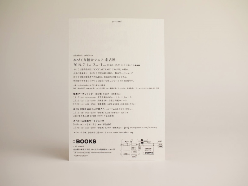 - 2014年12月に発足した本づくりの技術・文化を継承するための活動団体「本づくり協会」を広く知っていただくため関東をとびだしてのイベント第一弾として、名古屋コロンブックス様のご協力を得て、7月1、2、3日に「本づくり協会フェア名古屋」を開催します。