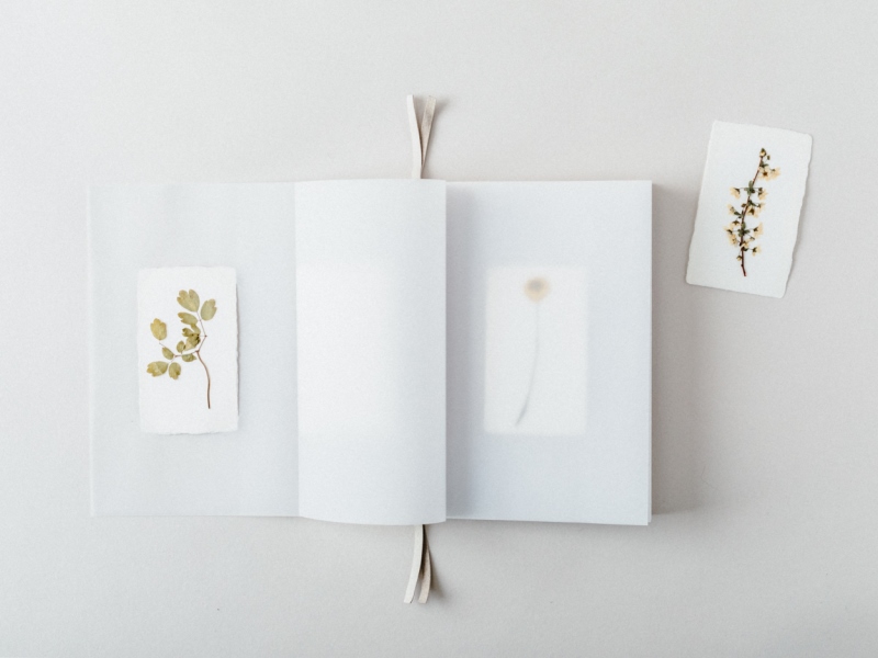 「COLLECTION BOOK」は、まず「クラシコトレーシングを使いたい」というのがあって、紙から発想した作品です。透け感のある紙と紙の間に押し花を挟んで束ねた標本帖。すべてのページが片観音になっているので、出し入れも可能です。