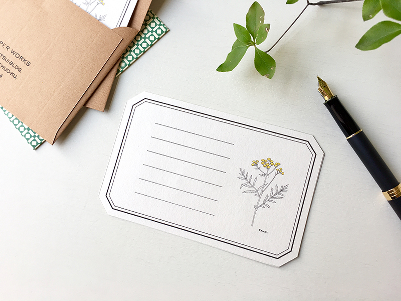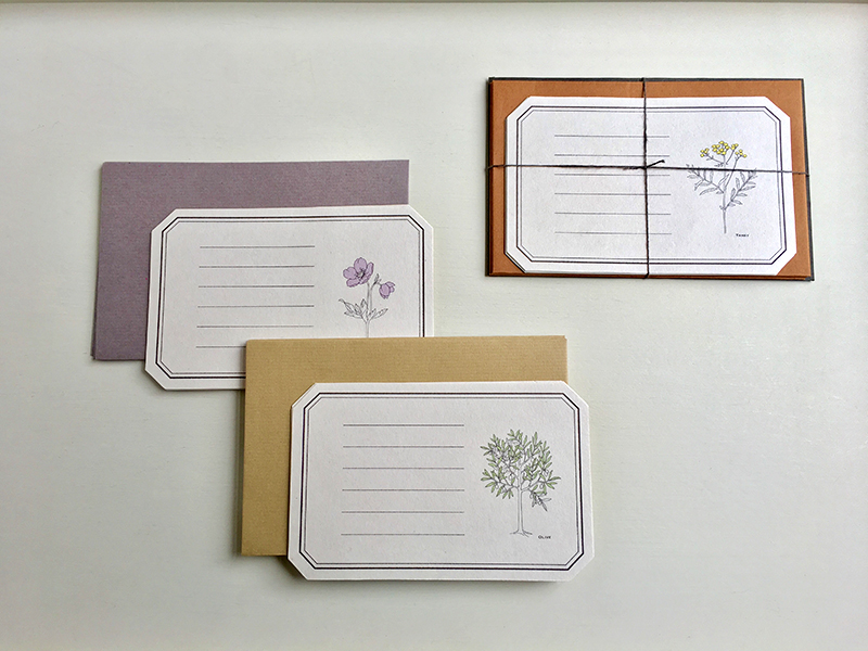 - 繊細な植物イラストの世界観を活かせるように、便箋にはナチュラルな表情のブンペルを選びました。元々クラフト紙が大好きで、繰り返し商品に使ってきたので、初めてブンペルをご紹介頂いた時はクラフト色のバリエーションに心が躍りました! 封筒にはブンペルと相性が良く外国紙のような縞目や色展開のポルカレイドを使っています。今回は秋に咲く植物に合わせてシックな3色を合わせていますが、来春には春咲きの花の便箋とビビットな色のポルカレイドで展開を予定しています。(プロペラスタジオさん)