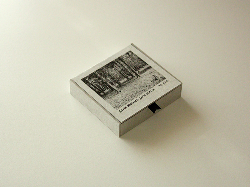 - NTラシャ「漆黒」の深みのある色合い、ほどよい質感に銀の箔文字が映え、美しく可読性の高い豆本作品が出来ました。受け箱の内張にも「漆黒」を使用、ボード紙との取り合わせによりストイックなデザインとなりました。(佐藤りえさん)