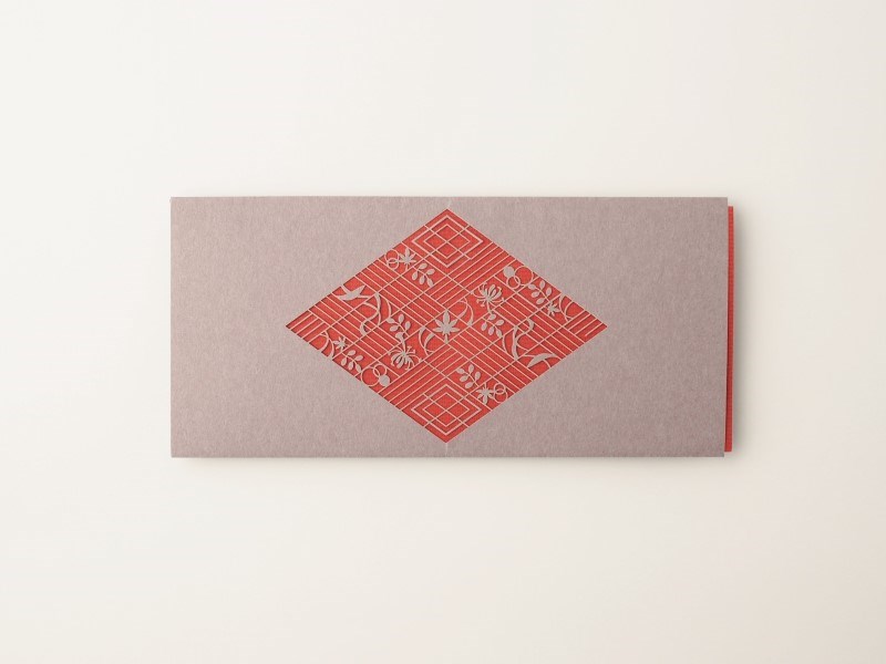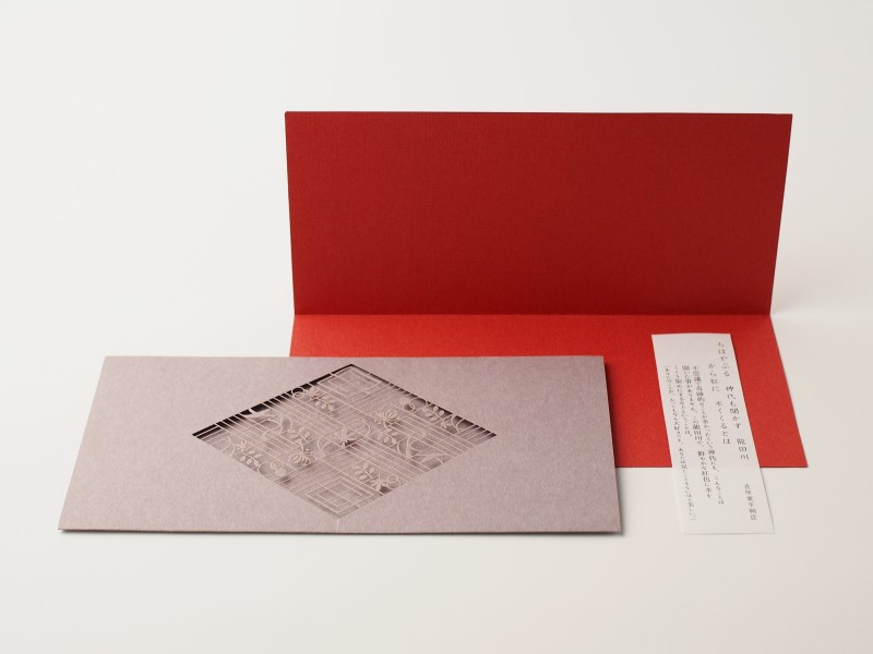 多くの人に親しまれているこの歌は、秋の情景を歌っていますが、ずっと変わらない気持ちを綴った恋の歌でもあります。用紙は色合いで選びました。朱色がかった赤とグレイッシュな紫で、少しもやがかった秋の情景と共に胸に秘めた大人の恋心を表しています。