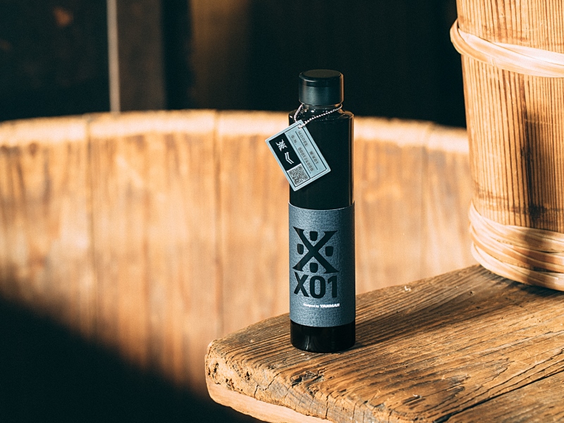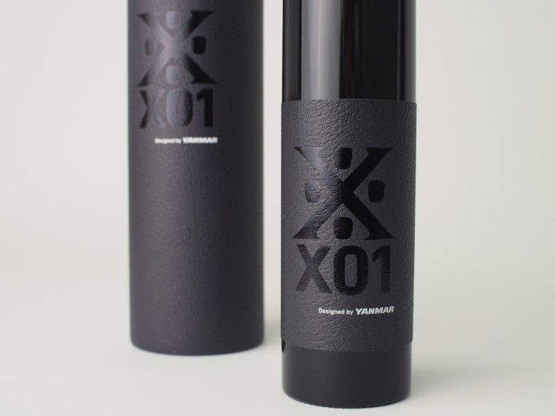 - 米印を屋号に持つ創業300年の沢の鶴と、世界の農業を100年間支えてきたヤンマーがタッグを組み、生まれたのが大吟醸酒『X01』です。ヤンマーが研究開発をした酒造りに適した稀少な酒米を使い、限定4000本という限られた販売数のため、その価値を表現できるパッケージの質感、風合いが重要でした。男酒と呼ばれる灘の酒をイメージした黒にこだわり、ガラス、金属、紙の異なる質感の黒が複雑に絡み合う事で高級感溢れるパッケージを実現しました。中でもレザック16の持つ本物のレザーのような風合いはお客様に触れるラベルと紙管パッケージとしては最適でした。紙管パッケージは、JANコードの読取の関係で白を使用しました。全面ベタ印刷ですが、通常のオフセット印刷で問題なく印刷できました。(ヤンマー株式会社 社長室 デザイン戦略室)