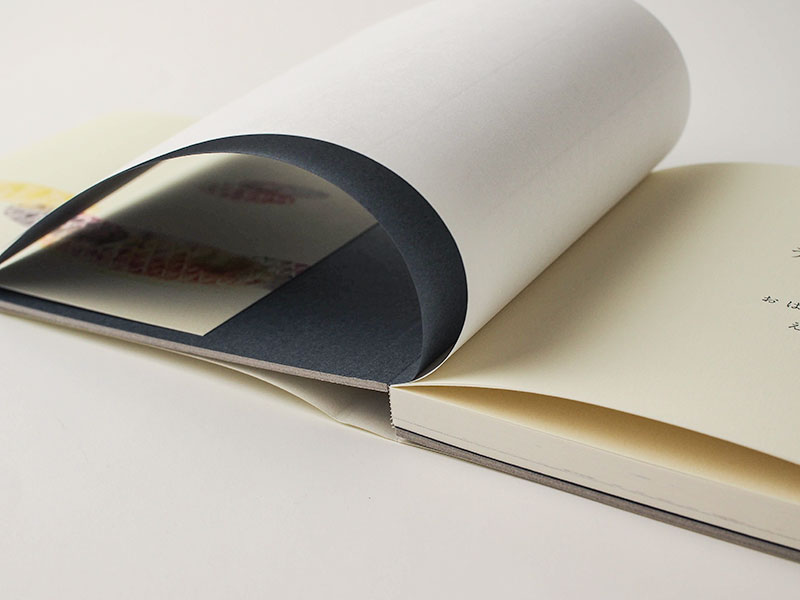 - 中ページは同じで、表紙まわりが布貼り上製本になります(上写真6枚目)。