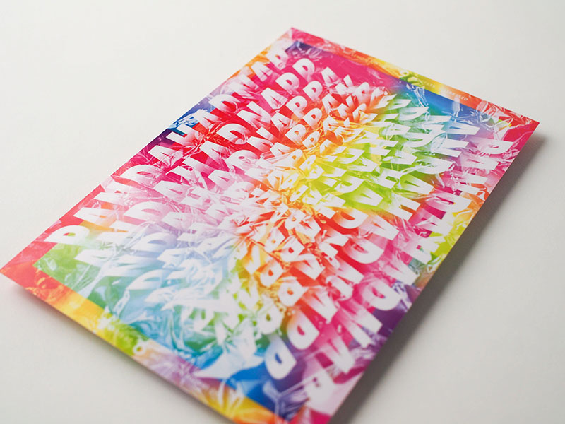 - 光沢感があってデザインの格を上げてくれる紙を、ということでご紹介いただいたのがインバーコートです。多色で変化の強いグラデーションが瑞々しく、かつ地の黄味も相まって、高彩度ながら優しい印象に仕上がりました。(株式会社tote 谷井さん)