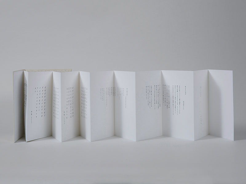 - 本づくり協会が発行する会報誌『Book Arts and Crafts』の企画から生まれた詩集です。書体設計家の鳥海修さんが谷川俊太郎さんのために書体をつくり、それを受けて谷川さんが書き下ろした詩が「私たちの文字」です。印刷は嘉瑞工房で何種類かの紙で試し刷りをし鳥海さんに見ていただきました。「文字の細いところと太いところの表情が豊かに出ている」ということで、ヴァンヌーボVが選ばれました。(美篶堂 上島明子さん)