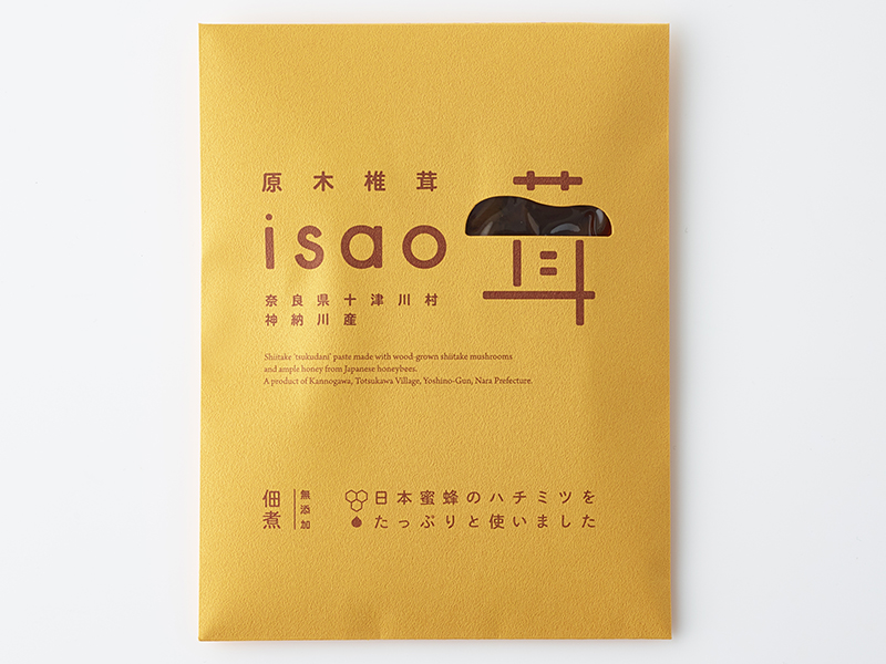 - 奈良県吉野郡十津川村神納川(かんのがわ)の山の中、岡田いさおさんが栽培する原木椎茸 isao茸(いさおだけ)。その椎茸の原木に使われるクヌギやコナラの木の花に集まった、日本蜜蜂のハチミツをたっぷり使って原木椎茸の佃煮を作りました。椎茸の原木になる木々とその花がめぐりめぐって一緒になった佃煮は、やさしい味がします。
