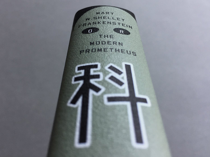 京都美學的紙張壓紋能作為表現人體肌膚紋理來使用。同時紙張本身具有硬度,抗耐磨的特性。而灰冷色調的白色紙張,剛好襯託科學怪人的特殊膚色。