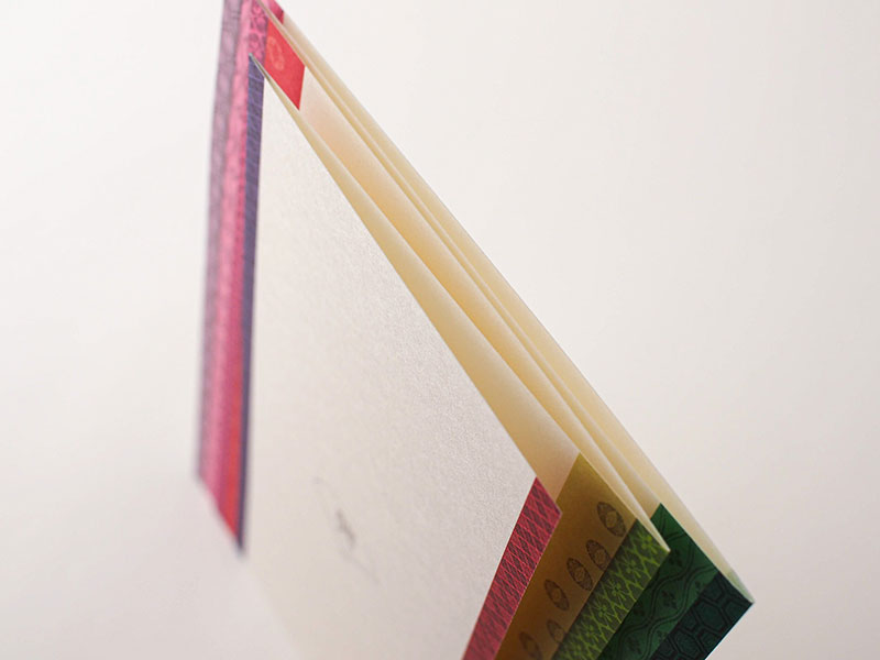多彩な色の組み合わせに四季を映す雅さを、和の風情をもつ新鳥の子でファイルにしました。深さの異なる4つの入り口があり、仕分けて活用することが可能です。(ブレインカフェ 大山由紀子さん)