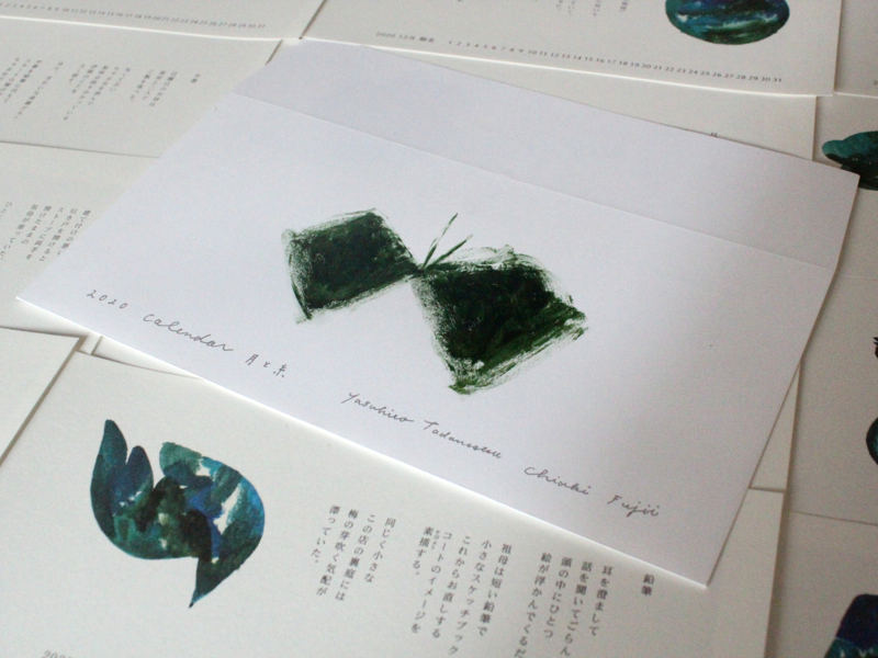 - カレンダーの販売だけでなく、カレンダーに掲載したイラストの原画や藤井千晶によるテキスタイル作品を展示します。また、各会場にてカレンダーの物語「月と糸」を音楽に乗せて朗読します。