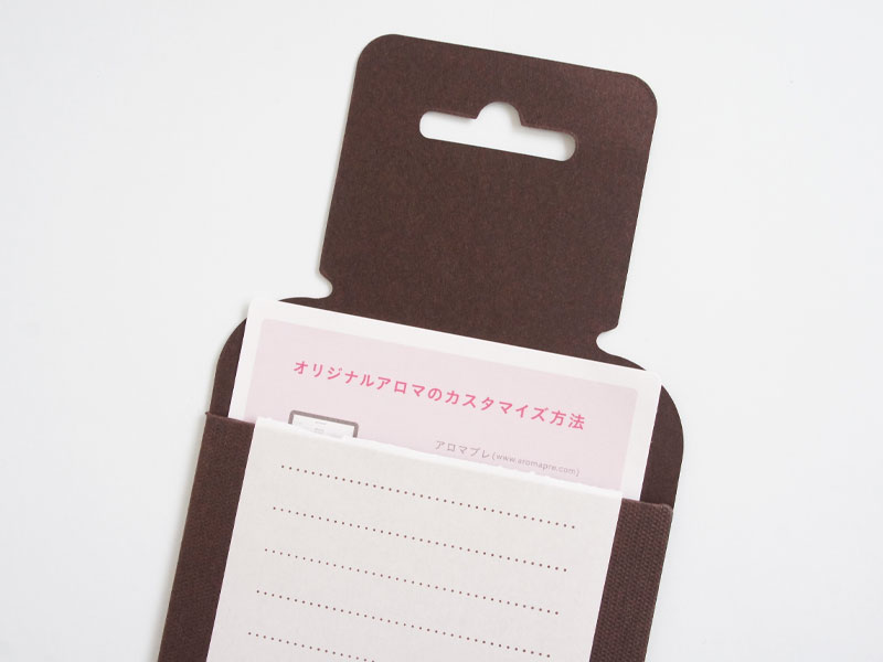 - オリジナルのアロマオイルが作成できるギフトカード用の封筒