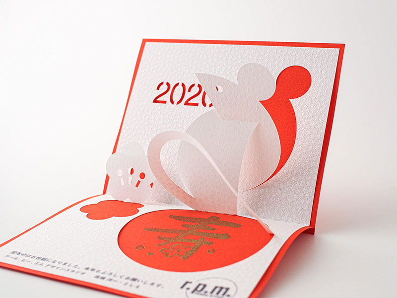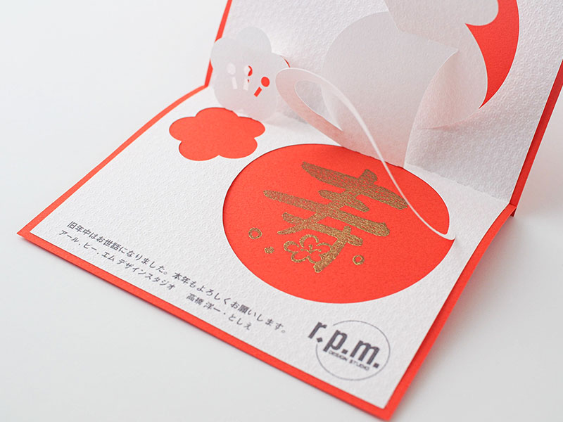 POP-UP式の絵本やカード、セールスプロモーションツールを制作されている、r.p.mデザインスタジオさんからいただいた年賀状をご紹介いたします。