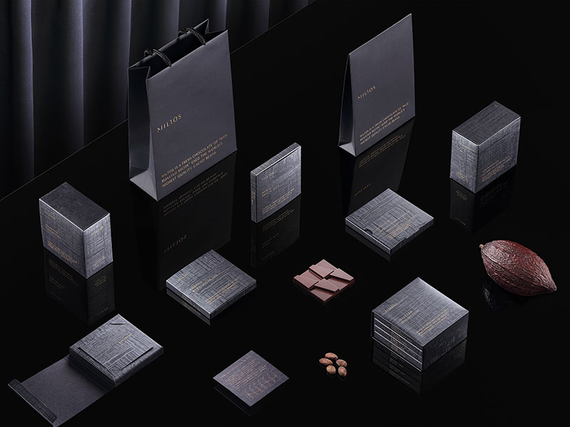 カカオ豆が本来持つ風味を最大限引き出すブランド哲学に感銘を受け、「香水の様なチョコレート」というアイデンティティを形成。カカオの香りや芳香、口溶けの滑らかさを、シルク生地のようなテクスチャが特徴的な「タチアナ-FS」によって表現しました。見る角度によって様々に煌めきを変える「タチアナ-FS」はブランドの高級感を更に際立たせてくれます。(Yuta Takahashiさん)