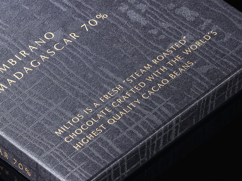 - MILTOS チーフショコラティエの高橋賢次氏自らカカオ生産地を訪ね、栽培、収穫、発酵、乾燥までカカオの品質をコントロール。カカオ豆が本来持つ風味を最大限活かす為、独自のスチームロースト製法によって焙煎。酸化を抑える為、三日後にはチョコレートが完成し店頭に並ぶあまりにもフレッシュなチョコレート。