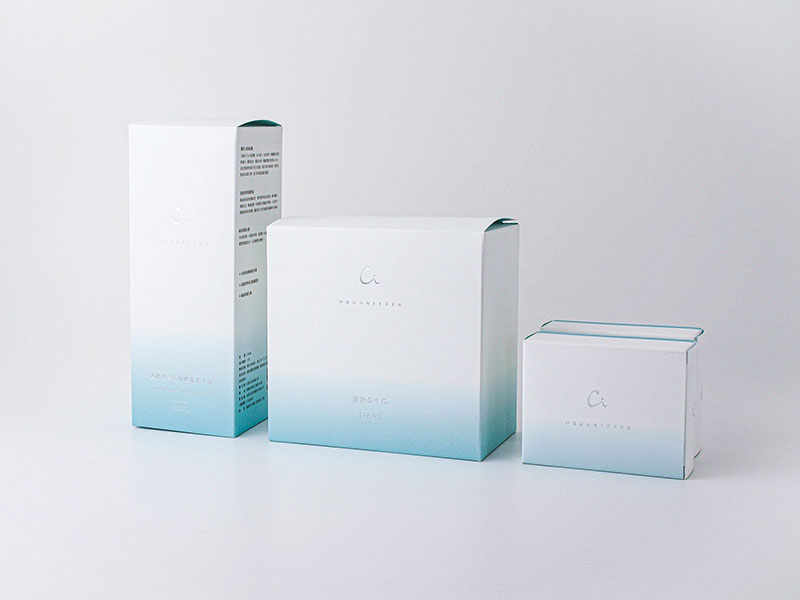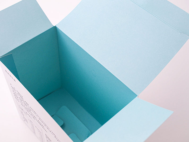 パントーンの中から指定した綺麗な青色でグラデーション印刷し、あえてスノーブル-FSの塗工の無い面を外側に使用しました。内側の塗工面にはベタで印刷し、パッケージを開けた時の驚きや喜びを内包させました。スノーブル-FSの印刷性能は特色のグラデーションを完璧に表現でき、パッケージを競争の激しいスキンケア市場の中で個性的で、競争力のある精緻な製品にしました。(呂芊儀さん)